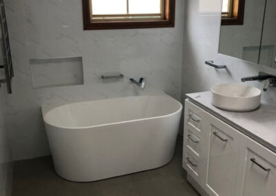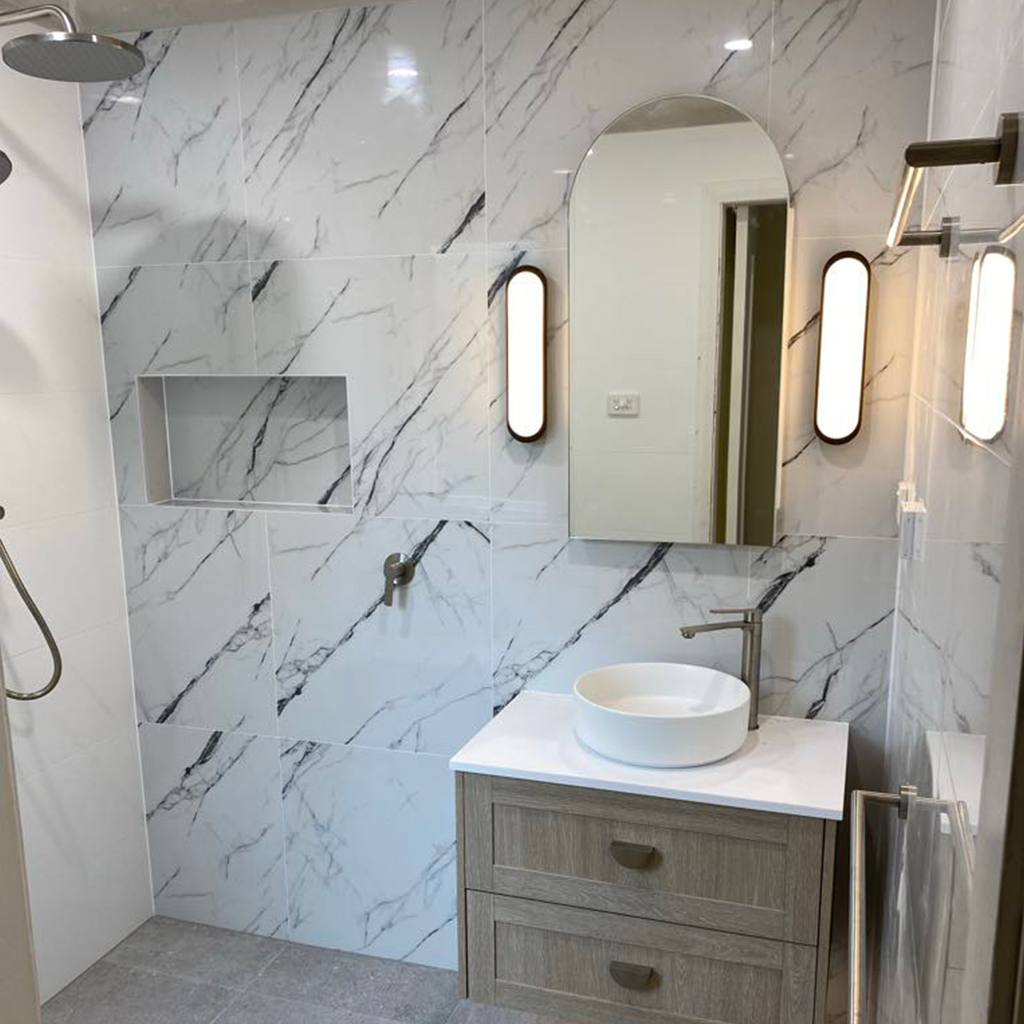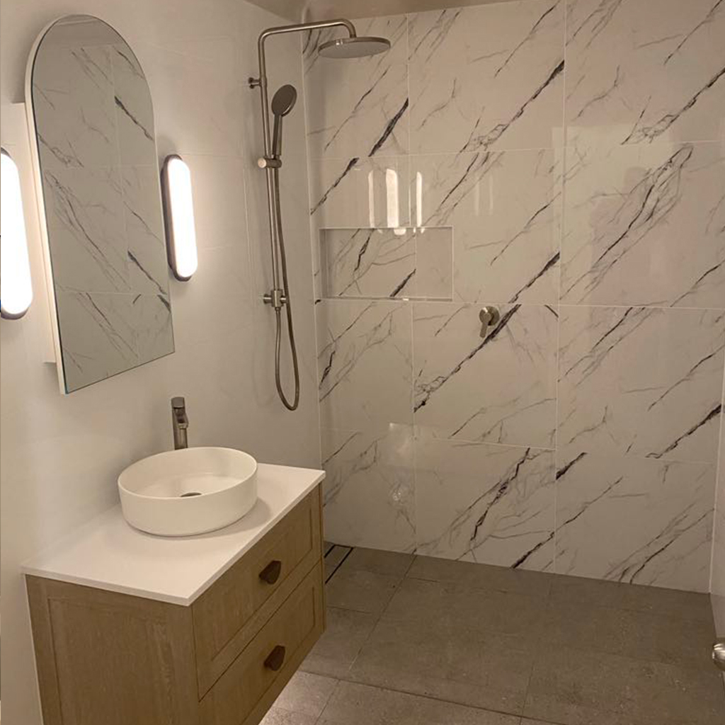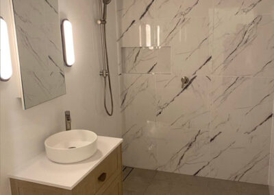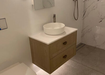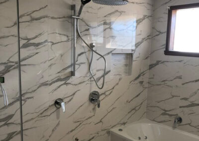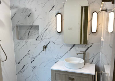 Our service includes all aspects of your project. From the removal of your old bathroom, preparation, waterproofing, installation plumbing, electrical work and tiling.
